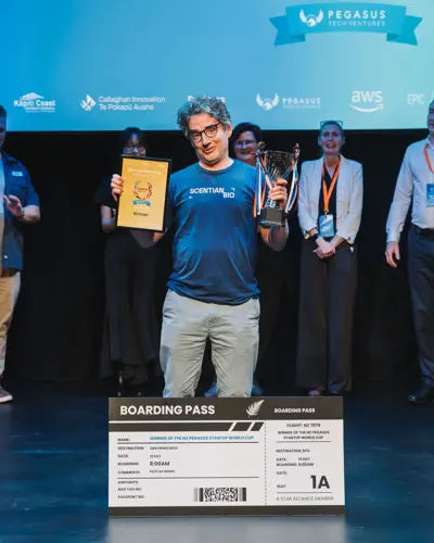 The Startup World Cup is backed by Pegasus Tech Ventures and spans over 100 regions across six continents. The New Zealand winner, Scention Bio flew to the Grand Finale in Silicon Valley which was held on 17 October 2025, representing New Zealand in front of global investors, media and peers.